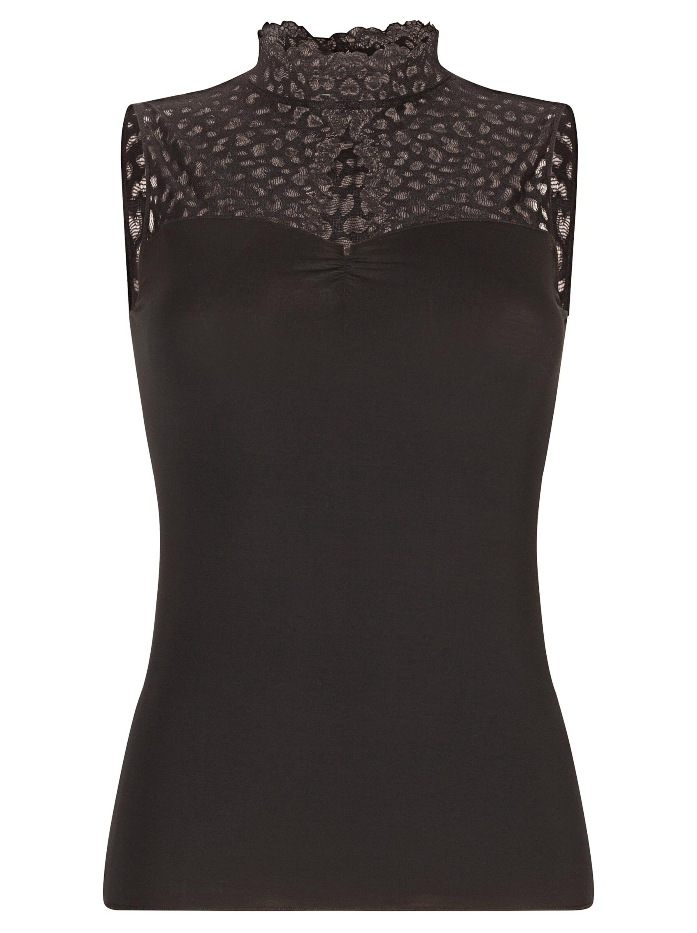 Blazershirt mit stehkragen und tropfenausschnitt aus spitze.